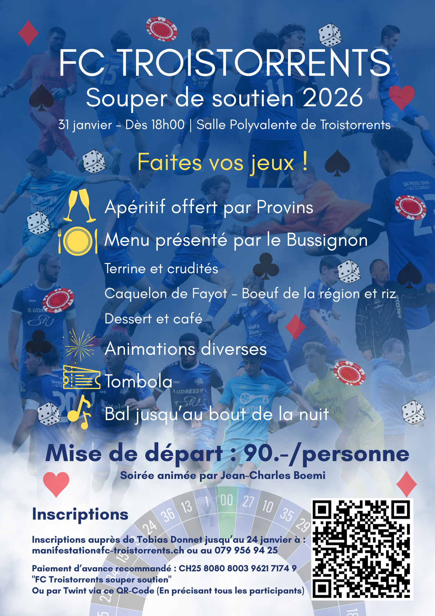 Découvrez le Club des 100 ainsi que les manifestations du FC Troistorrents et les équipements.